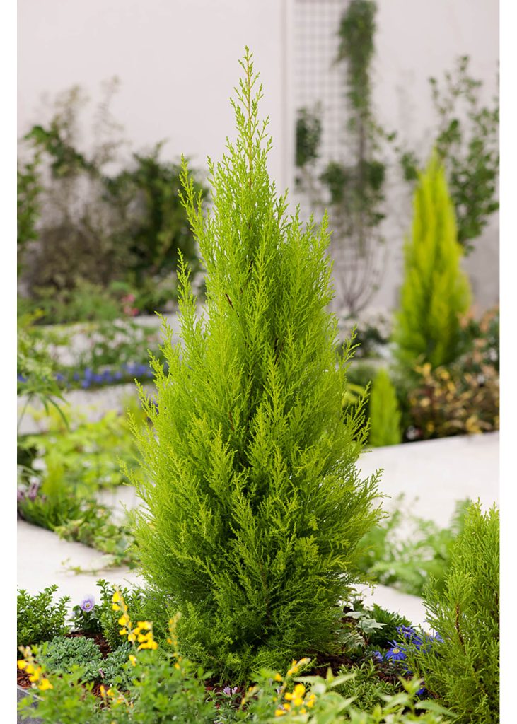 A popular, neat, evergreen conifer with a conical growth habit and vibrant lime-green to golden-yellow foliage that smells of lemons when crushed. It is ideal for hedging, topiary, or as a container specimen.